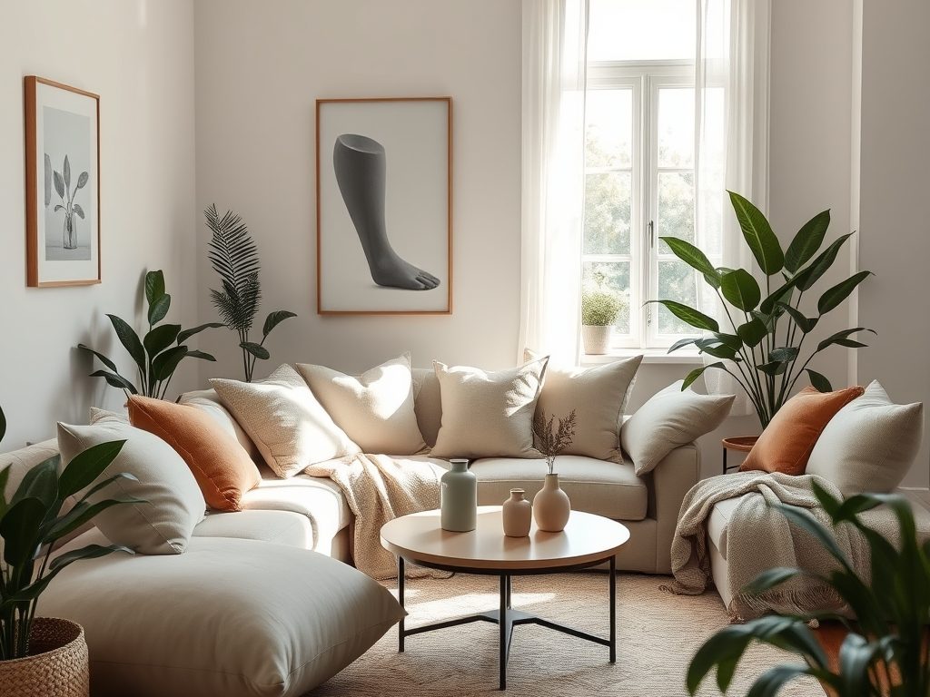 Miękkie poduszki, ciepłe koce i lekkie zasłony w odcieniach beżu, szarości czy bieli będą dodatkowo ocieplać przestrzeń. Zainwestuj w dywan, który doda tekstury oraz komfortu. Lampy stojące i dekoracyjne mogą nadać wnętrzu charakteru i elegancji. Warto także rozważyć użycie roślin doniczkowych, które umilą atmosferę i są łatwe w pielęgnacji.